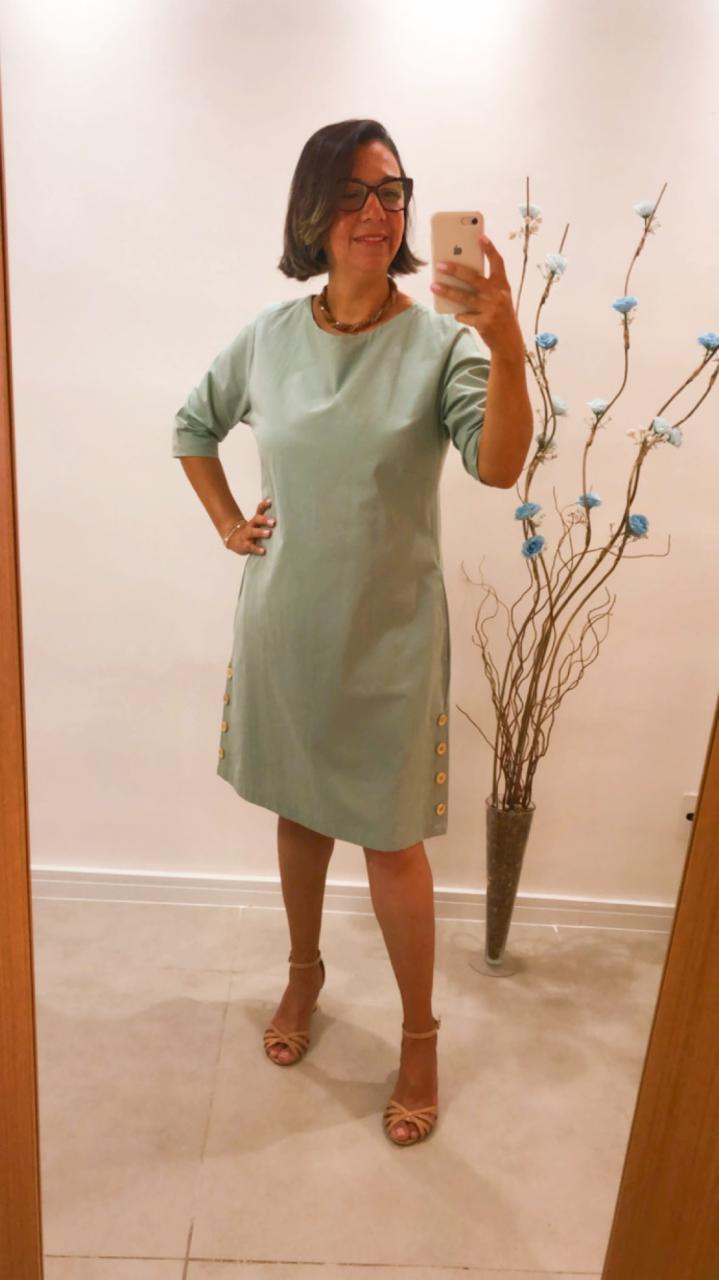 Vestido em tricoline com manga 3/4, fechamento com um botão nas costas e barra com detalhe em botões que traz um charme e sofisticação para a peça, possui modelagem ampla e confortável, super versátil para diversas ocasiões. Elegância é o que representa esse modelo e você vai arrasar no look!