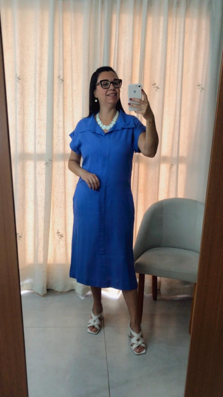 Vestido em linho misto com viscose na cor azul cobalto, manga japonesa e barrado italiano, fechamento fake, possui bolsos mais fendas laterais e frontal que trazem mais balanço e charme para peça. Modelo bem leve e fluído, tecido fresco para dias quentes, além da versatilidade de uso em diversas ocasiões e composições de looks!